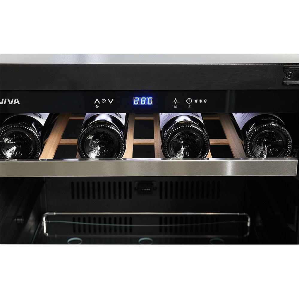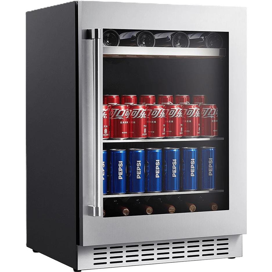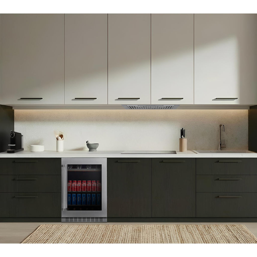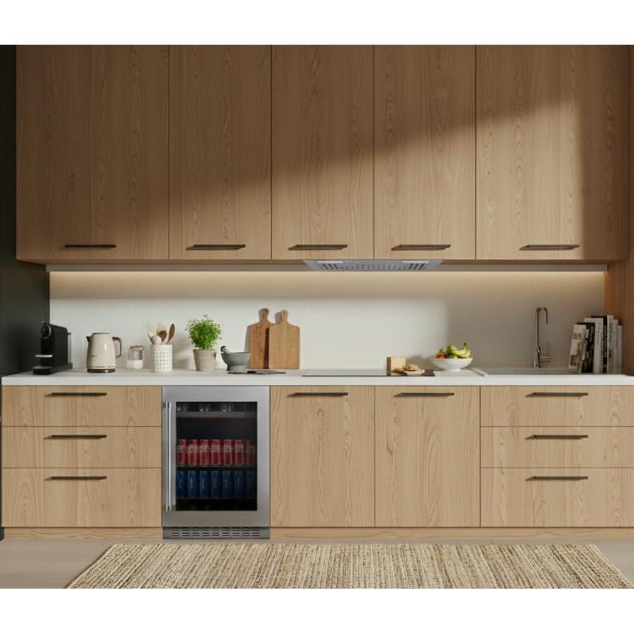 • 1 full-extension, soft-close wood rack with stainless trim + 2 glass shelves with airflow openings