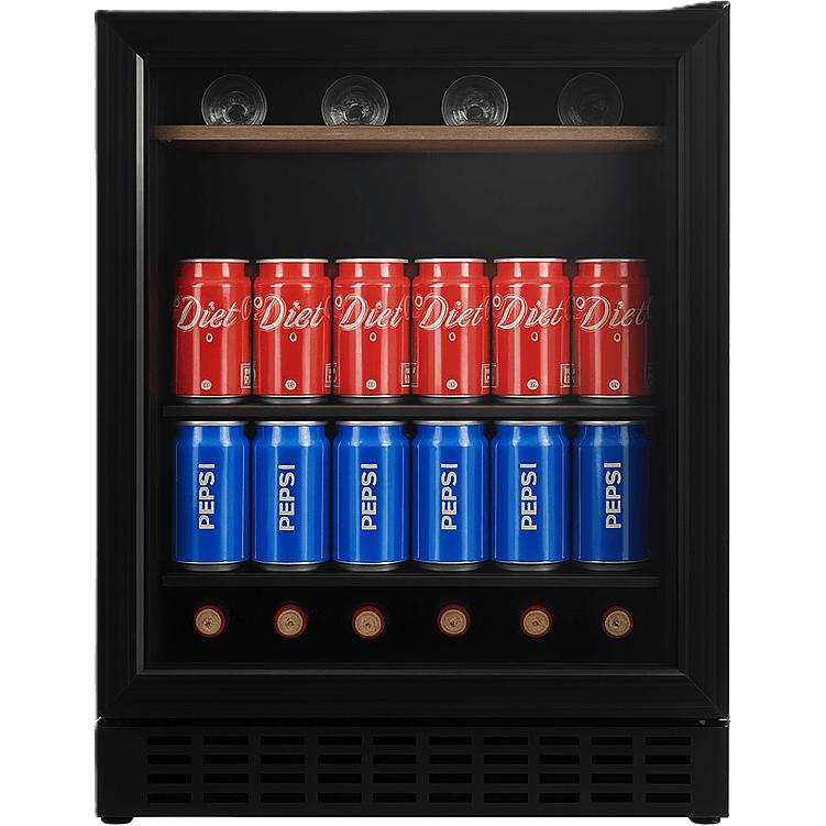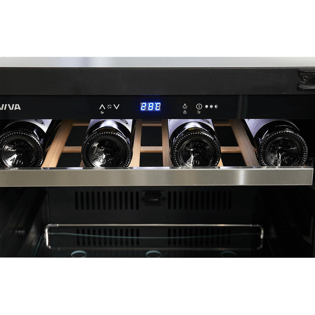 • 1 full-extension, soft-close wood rack with stainless trim + 2 height-adjustable glass shelves with airflow openings