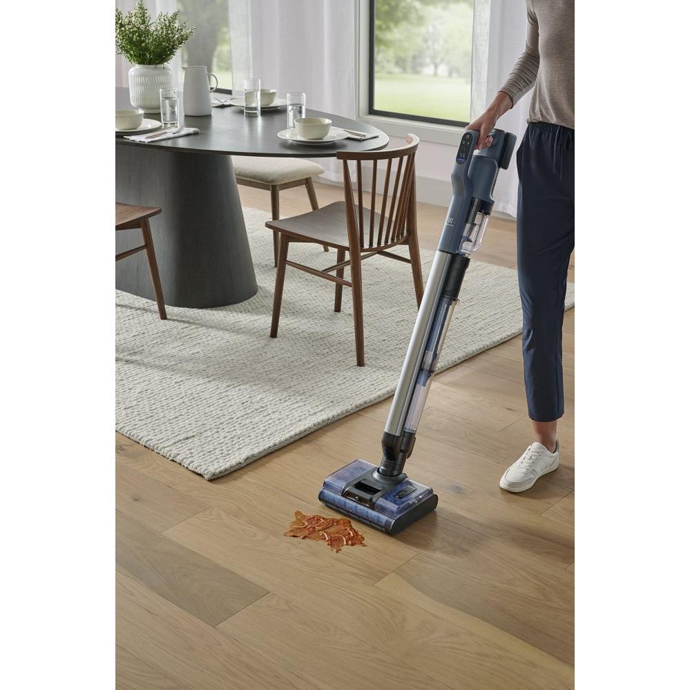 The Electrolux Complete Home Wet & Dry Vacuum is expertly designed to tackle everyday messes, from muddy paw prints to juice spills and everything in between. With a 2-in-1 design, you can clean your home's hard surfaces with the flexible wet & dry nozzle, which features edge-to-edge cleaning, allowing you to clean along cabinets and under chairs with ease, while the hand unit makes cleaning furniture or small spaces possible in one convenient unit. This vacuum is also equipped with a motorized bristle nozzle, which allows you to clean your carpets and area rugs for a complete home cleaning. Maintenance is easy with the built-in self-clean technology, which washes and dries your nozzles, and the fuss-free bin system keeps wet and dry debris separate for easy emptying.