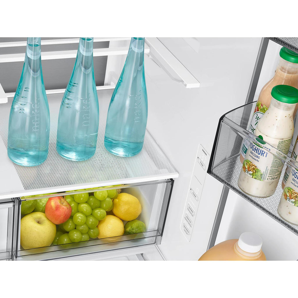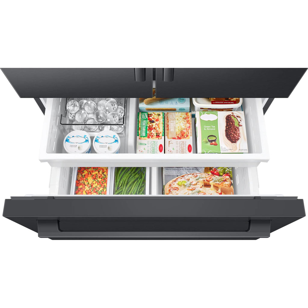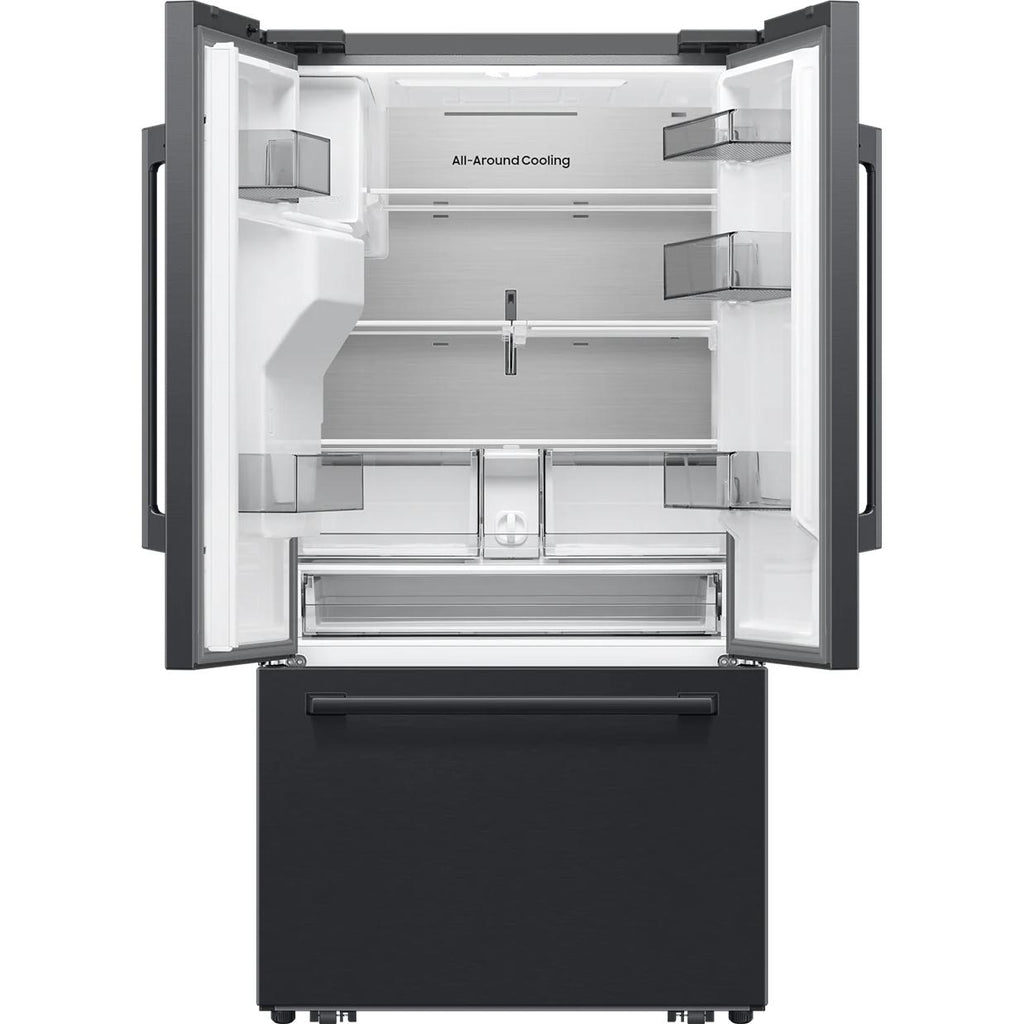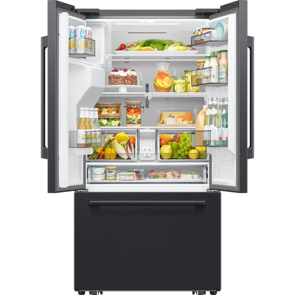 Samsung Bespoke AI 3-Door French Door. Enjoy your favorite beverage with up to four types of ice. Choose from Sphere Ice™ or Half Sphere Ice™ from the freezer drawer and curved or crushed ice from the external dispenser. Zero clearance fit fridges are designed to fit in all types of spaces. Special hinges and slim doors allow the fridge to open with minimal gaps between walls and cabinets, providing a seamless look.