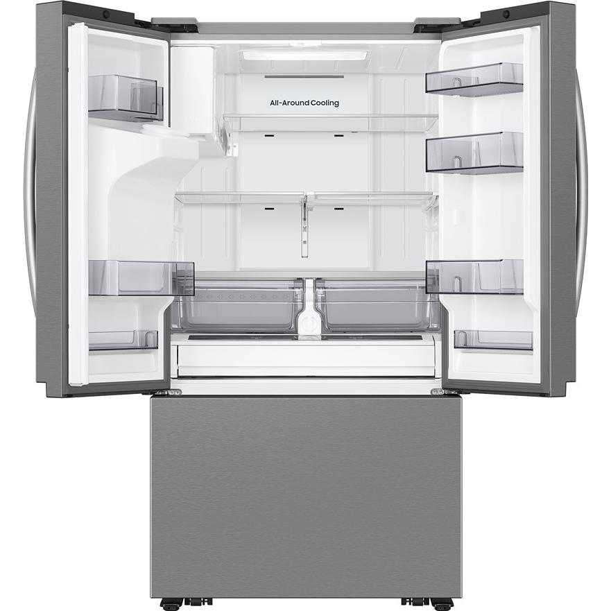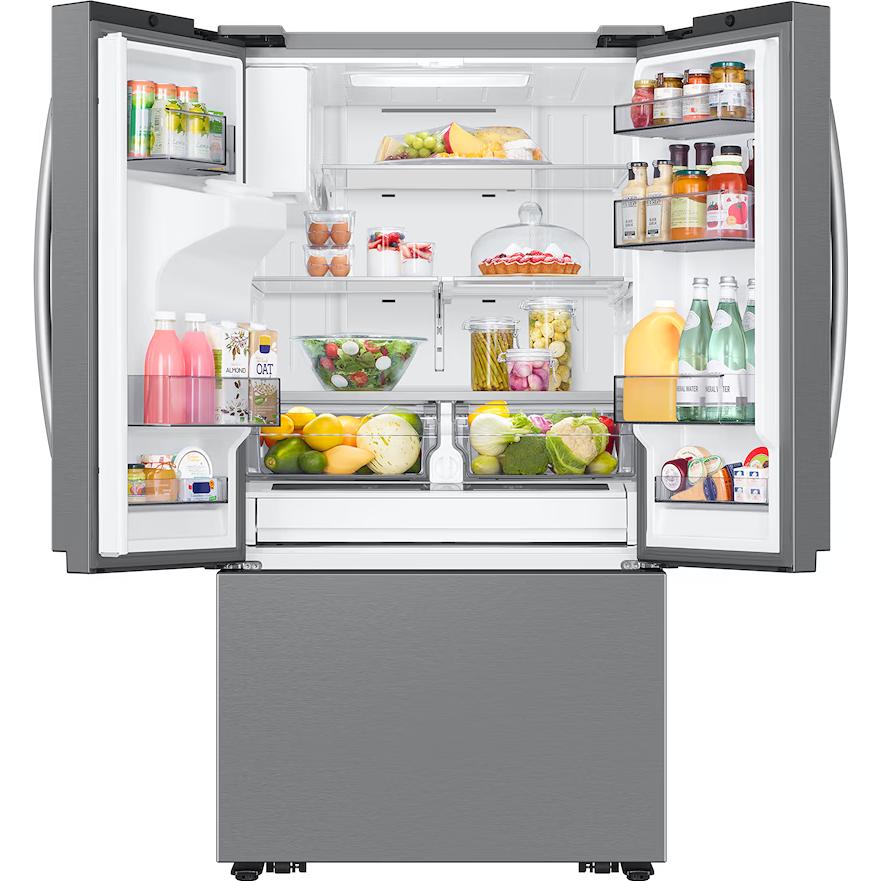Samsung 31 cu.ft. Bespoke AI 3-Door French Door Refrigerator RF60 Jumbo Mega Capacity External Water & Ice Dispenser. Store more groceries with a spacious interior. Unique SpaceMaxTM technology uses special high-urethane insulation that enables the walls to be thin without compromising energy efficiency. Get ice your way with the Auto Ice Maker. Choose from curved or crushed ice all on demand with no trays to fill.