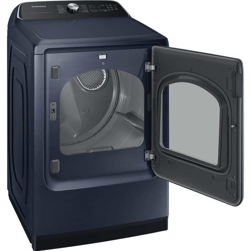 This Samsung 7.4 cu.ft dryer combines large-capacity performance with smart convenience features to simplify your laundry routine. Its LED display, reversible door and interior drum light make loading and monitoring easy, while steam cycles help reduce wrinkles, refresh fabrics and sanitize items. With 12 drying cycles, multiple temperature, time and dryness levels, and Smart Control via the SmartThings app, you get customized care for every load. ENERGY STAR® certified and finished in stylish Brushed Navy, this dryer delivers efficiency, versatility and modern connected functionality.