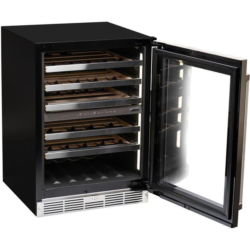 Introducing our Pro Gen 3 – 24” Wine Cellar, perfect for built-in or under-counter installation. This cellar offers a dual zone temperature control with a range of 41°F to 64°F (5°C to 18°C), ensuring optimal storage conditions for your wine collection. Crafted with a stainless steel door, kickplate, and pro-style handle, it exudes elegance and durability. Enjoy the convenience of the soft-close function on both the door and full extension shelving, along with zero-clearance concealed hinges and a field-reversible door swing for seamless integration into any space. Illuminate your collection with anti-glare LED side lighting featuring the new Gallery Mode, while our Patent Pending Shelf System offers adjustable bottle spacing and angled Easel Display™ for showcasing your wines beautifully. With additional features like a charcoal filter, UV blocking glass, and anti-vibration components, this cellar creates the ideal environment for wine storage. Backed by a 2-year warranty covering parts and labor with in-home service, you can trust in the quality and reliability of our product.