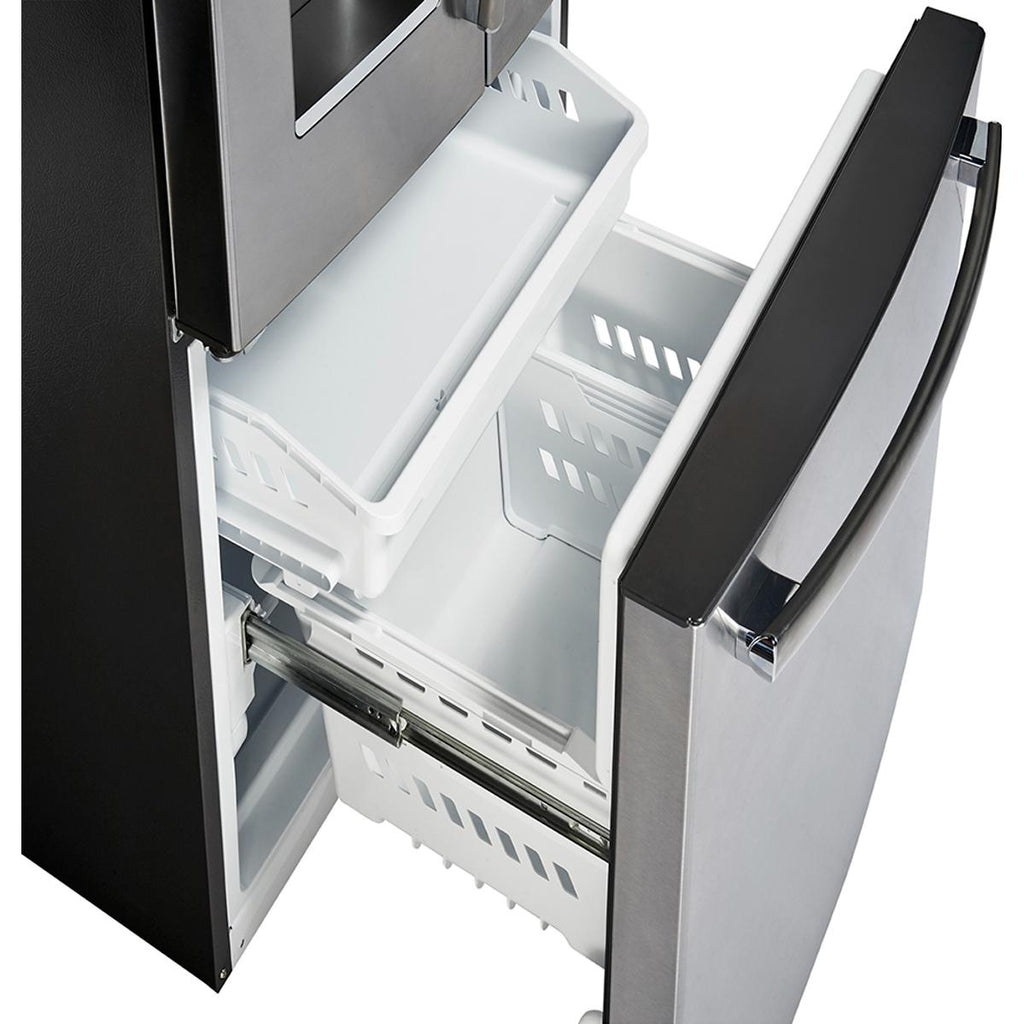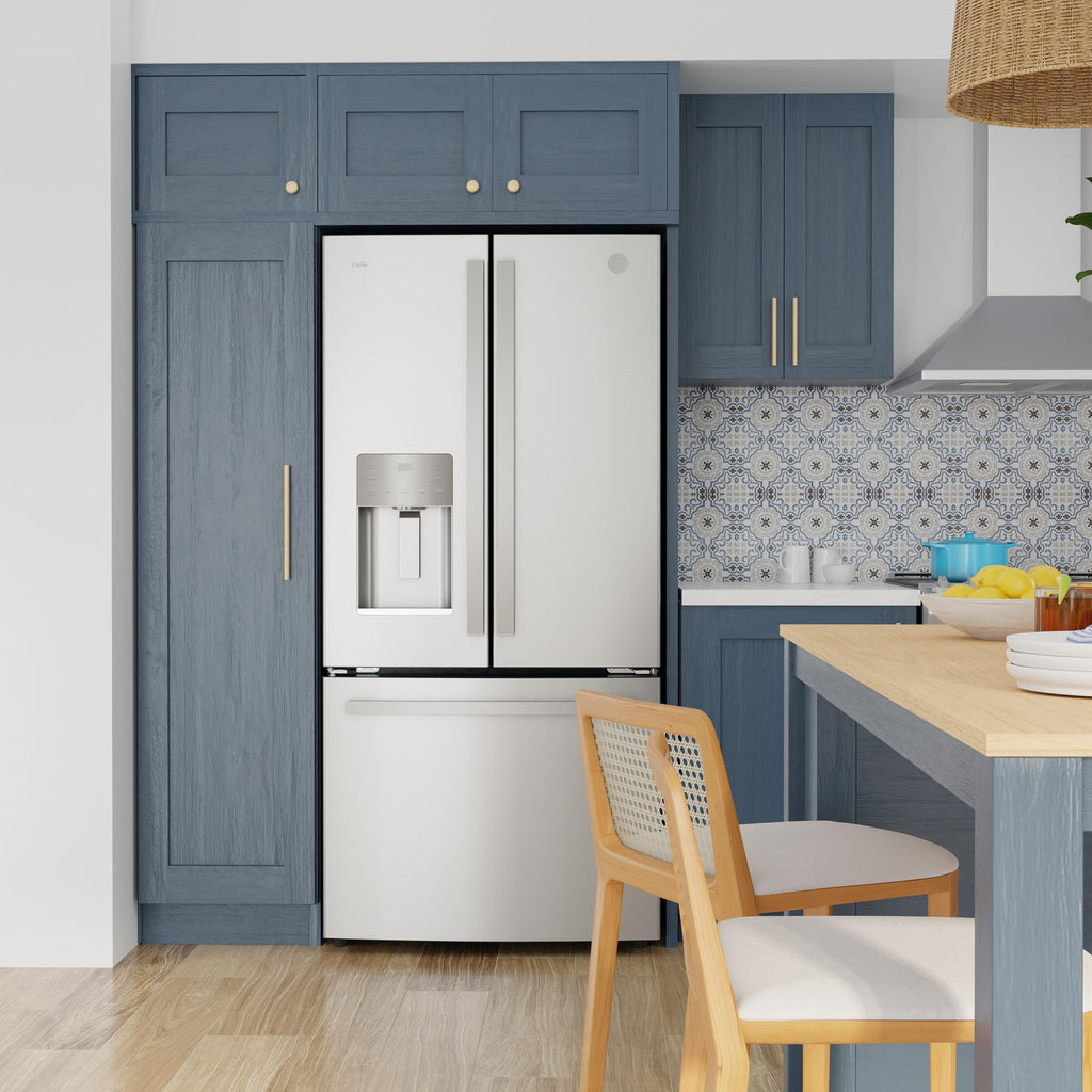 Réfrigérateur à porte à deux battants GE Profile à profondeur de comptoir homologué Energy Star® d’une capacité de 17,5 pi³ avec distributeur d’eau et de glaçons intégré avec affichage de la température réelle. Il est doté de la technologie FrostGuard™ dans le compartiment congélateur, de commandes de la température à l’avant et de bacs à fruits et à légumes à humidité contrôlée.