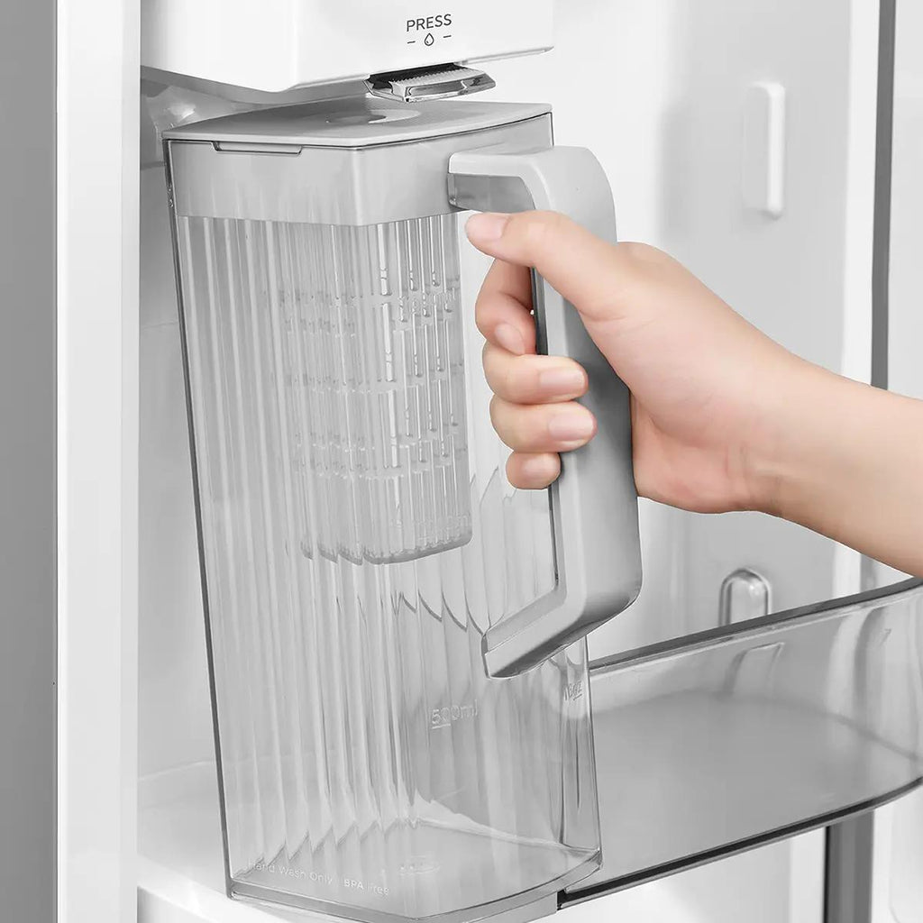 Ayez toujours de l’eau filtrée à portée de main grâce à ce pichet intégré qui se remplit automatiquement, garantissant qu’elle est prête quand vous en avez besoin. Plus besoin d’attendre devant l’évier ou d’occuper l’espace précieux de la porte du réfrigérateur. Il vous suffit de le prendre et de l’emporter, que vous receviez des invités ou que vous remplissiez rapidement votre bouteille réutilisable en sortant.