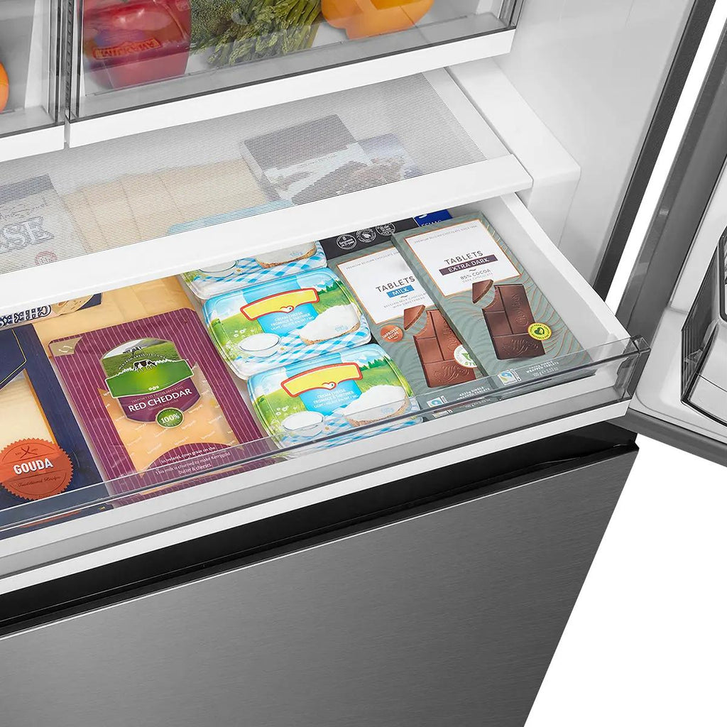 Maximisez votre espace de cuisine grâce à la capacité spacieuse de 26,5 pi³, ce qui offre suffisamment d’espace pour tout ranger, des fruits et légumes frais aux restes, en passant par les plats préparés pour les fêtes. Grâce aux larges tablettes et aux zones profondes de stockage, vous pouvez tout organiser sans encombrement, ce qui vous permet de passer plus de temps à profiter de votre cuisine.