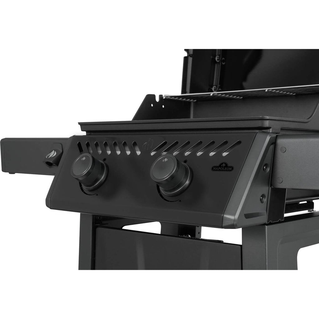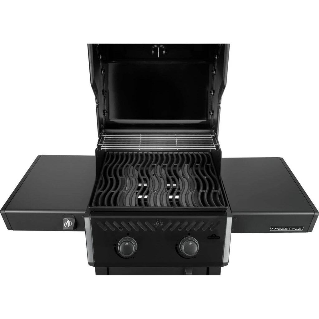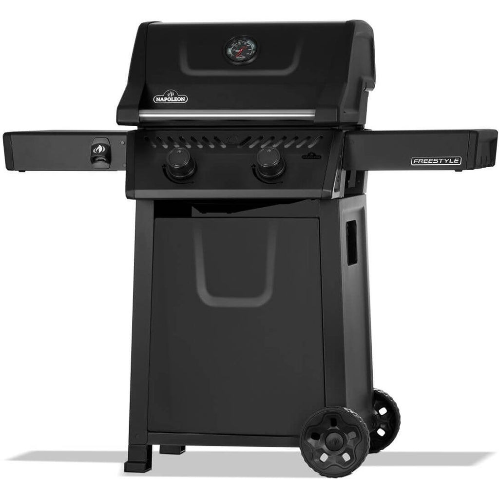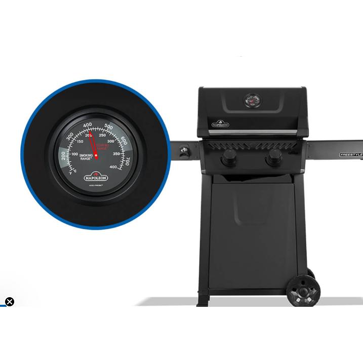 Le gril à gaz à deux brûleurs Freestyle™ 365 de Napoleon® est un modèle compact et peu encombrant qui vous offre une valeur imbattable. Il est idéal pour les terrasses, les balcons et les petites cours. Le système d'allumage fiable JETFIRE™ allume les brûleurs instantanément, tandis que les brûleurs en acier inoxydable et la jauge de température ACCU-PROBE™ garantissent une chaleur constante et un contrôle précis. Les grilles de cuisson WAVE™ en fonte émaillée emprisonnent les jus et produisent des marques de grillade parfaites à chaque fois. Pour plus de commodité, les tablettes latérales rabattables avec crochets à ustensiles et ouvre-bouteille intégrés permettent de garder vos essentiels à portée de main sans encombrer l'espace. Durable et facile à déplacer grâce à ses roues robustes, il est conçu pour s'adapter à tous les espaces.