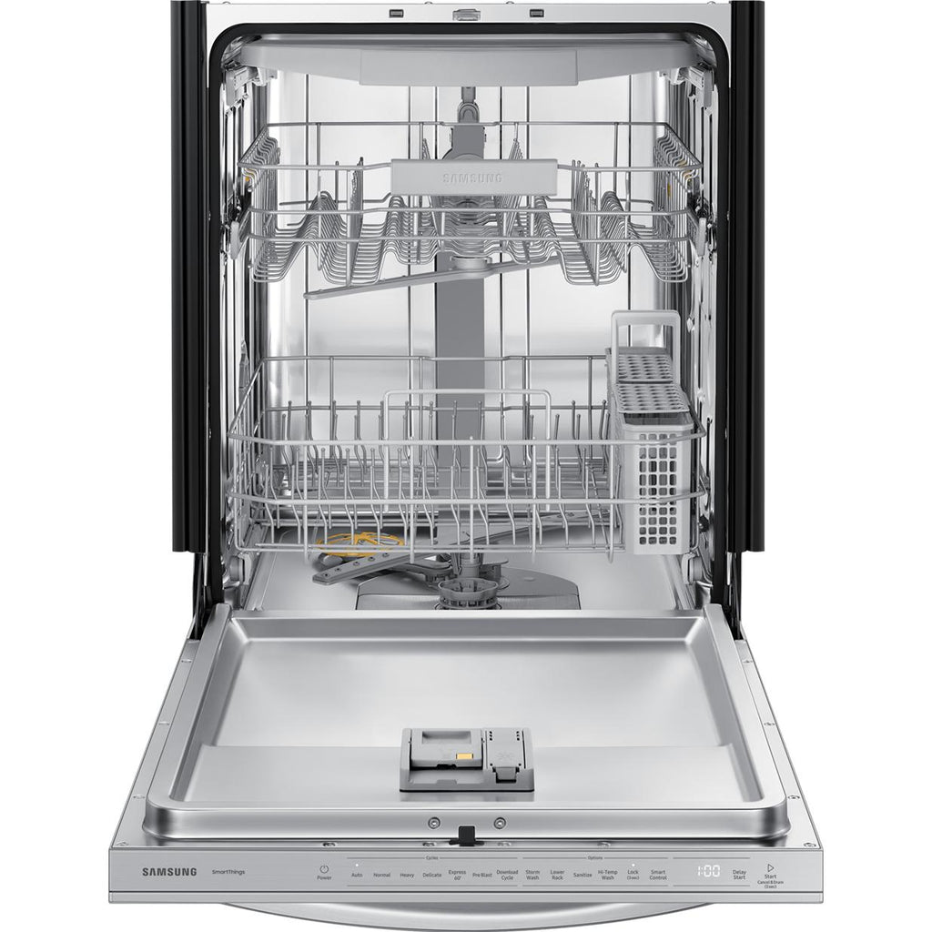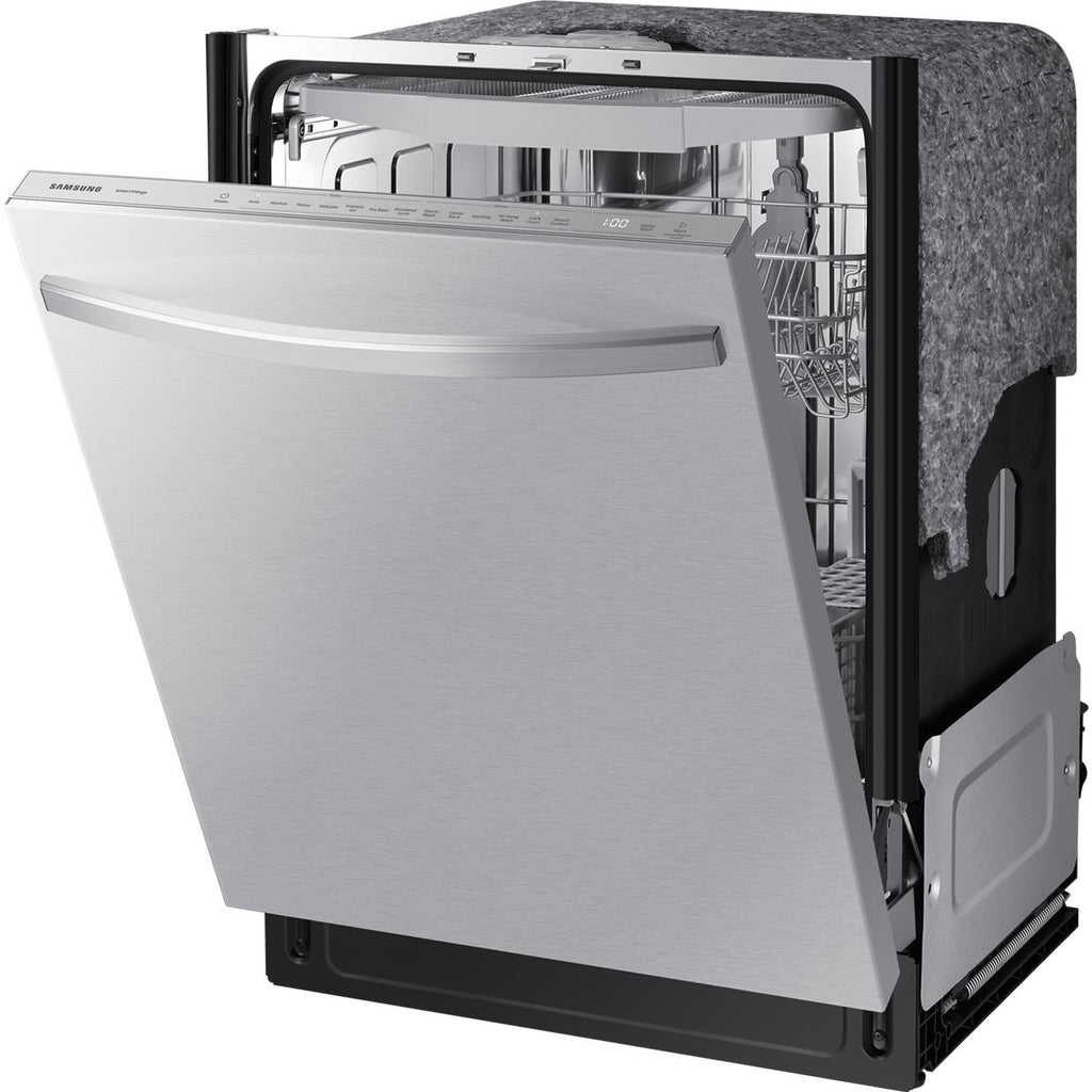 Le lave-vaisselle Samsung de 24 pouces à commandes dissimulées offre une connectivité Wi-Fi, un 3e panier, la technologie StormWash™, 7 programmes de lavage et peut accueillir jusqu’à 15 couverts. Le système StormWash™, avec ses jets rotatifs puissants, élimine le besoin de prélavage en assurant un nettoyage en profondeur sous tous les angles, même dans les zones difficiles d’accès. En fin de cycle, la porte s’ouvre automatiquement grâce au système AutoRelease™, permettant une meilleure circulation de l’air et un séchage amélioré.